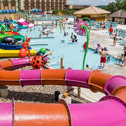 • A 76,000 sq ft indoor waterpark kept at 84°F all year long.